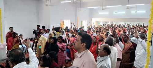 Pastor David Prakasam has a church of 10-12,000 and out of this base has planted churches all over India and this church plant in Kerala is the most recent one. What a great work he does.